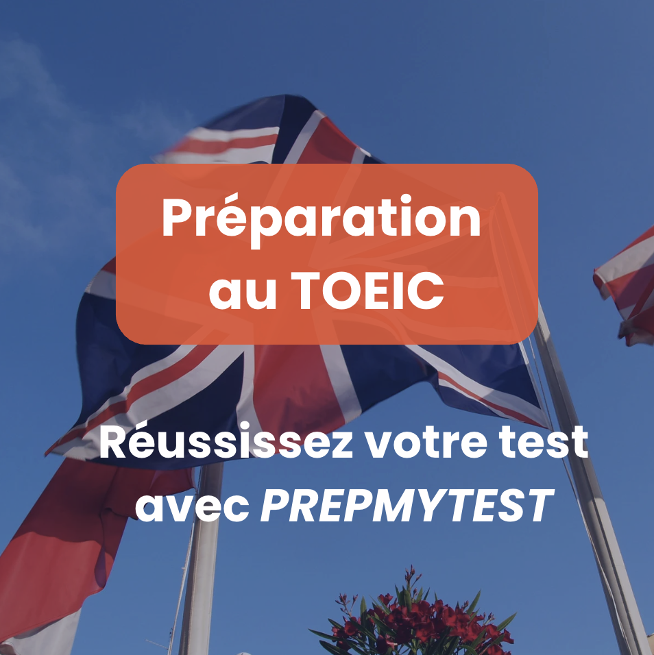 La Formule de préparation PREPMYTEST TOEIC vous permet de vous préparer aux épreuves du test TOEIC. Nos étudiants obtiennent en moyenne un score TOEIC supérieur à 905 ! Cette formule contient des cours de préparation TOEIC en live avec nos professeurs experts, des supports de cours, une multitude de tests et de concours blancs pour vous préparer au TOEIC.